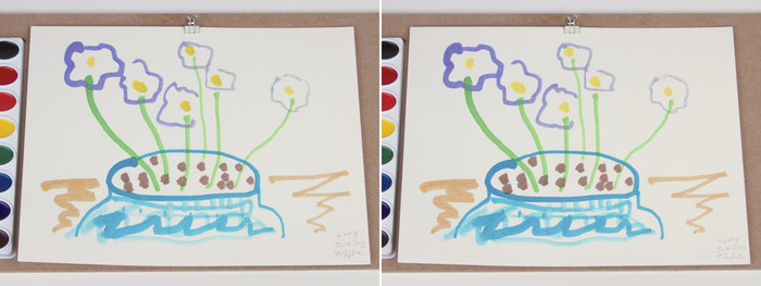 For an example, take a look at the two paintings shown above-- they are nearly perfect copies. One was painted right one painted right after the other. With the WaterColorBot, you can easily make an extra painting for Grandma. (And you can always save the file for later, just in case something happens to the one on the fridge.)
